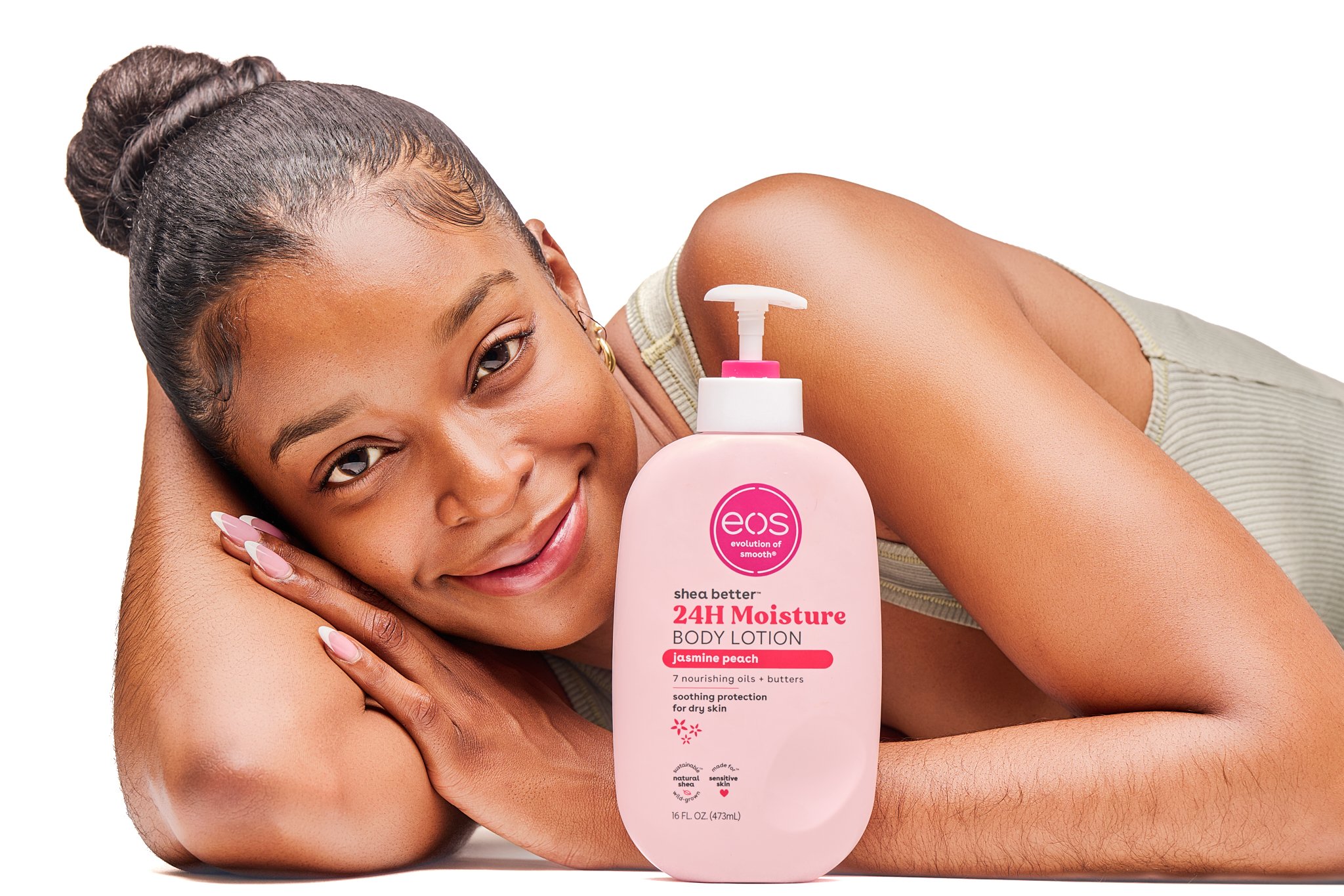 This spec campaign reimagines eos Shea Better 24H Moisture Body Lotion in Jasmine Peach as an everyday body care essential within a soft, elevated self-care ritual. Through clean studio portraits, product-focused compositions, and touchable skin moments, the story highlights nourishment, comfort, and lasting hydration while capturing the lotion as both functional and indulgent. The campaign emphasizes ease and softness, positioning eos as a body care staple that brings moisture, warmth, and confidence into the everyday.