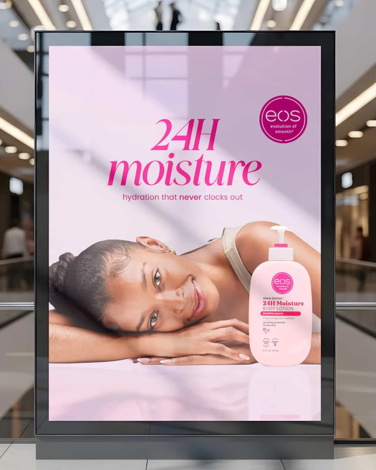 This campaign demonstrates our ability to translate EOS body lotion’s core benefits, such as deep moisture, softness, and daily skin nourishment, into elevated, market-ready visuals for beauty, wellness, and body care brands.